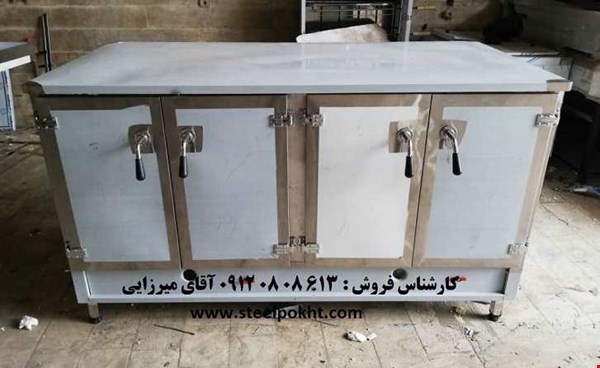از فر دمکن صنعتی دو قلو جهت قرار دادن دیگ برنج در داخل آن و دم کشیدن برنج و همچنین جهت گرم نگهدای برنج استفاده می شود.