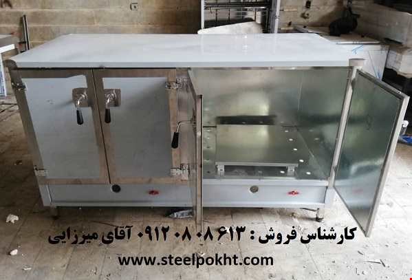 گرمخانه صنعتی یا فر دمکن صنعتی دو قلو به صورت گرمای غیر مستقیم غذا را گرم نگه می دارد.