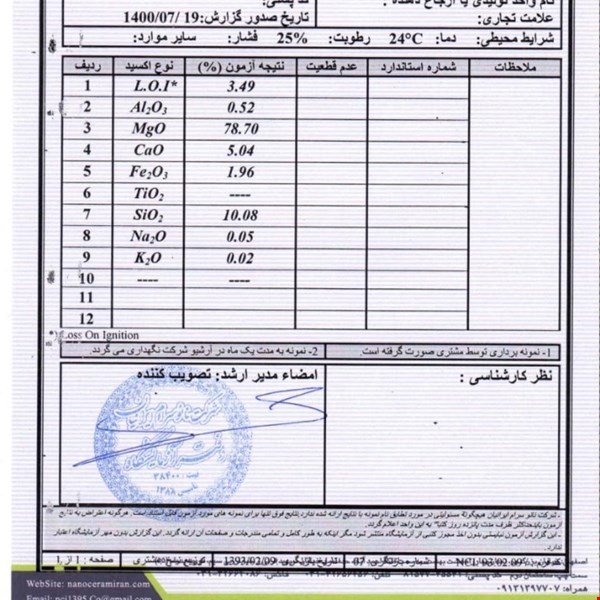 اکسید منیزیم - مواد معدنی - خلوص حدود 80کد 322 - سنگچین