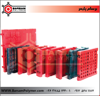 محصولات برسام پلیمر بیشترین گزینه را به مشتریان ارائه می دهد تا به آبگیری و دانه بندی کامل و بهینه دست یابد. توری های پلی یورتان نه تنها از نظر ابعاد مش بلکه از نظر نحوه نصب و همچنین سطح باز موثر (free space) به آبگیری و دانه بندی مواد معدنی کمک می کند.