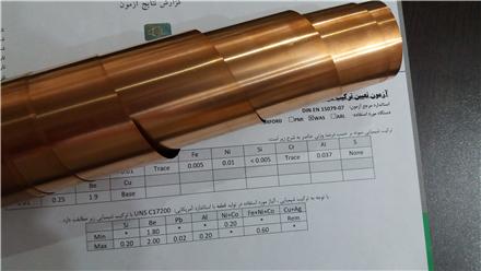 فروش ورق مس برلیوم 2 درصدضخامت 1 دهم NGK ژاپناندازه عرض ورق 19 سانت رول اکبنددارای برگه انالیز c17200فروش فوری زیر قیمت بازار