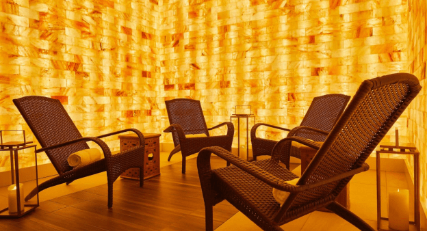 --کاهش استرس در یک اتاق آرام و کم نور پر از نمک