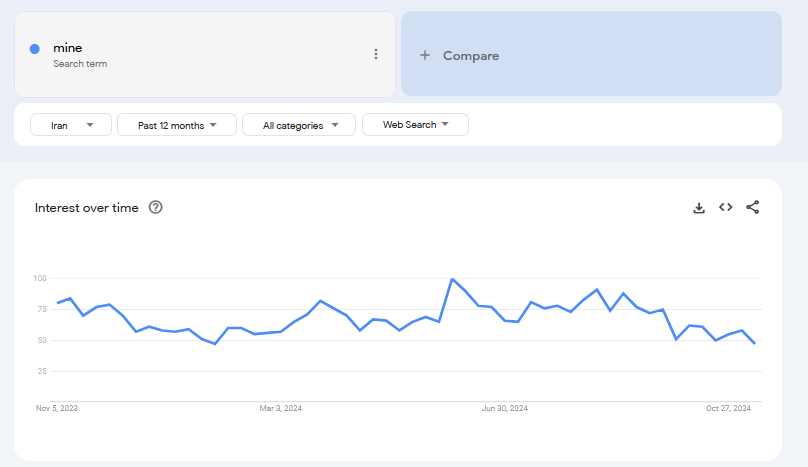 بررسی کلمه معدن یا ماین در گوگل ترندز