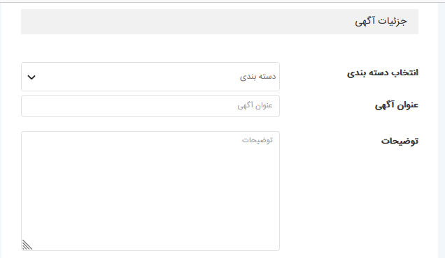 -توضیحات جزئیات و اطلاعات مهم در مورد آگهی