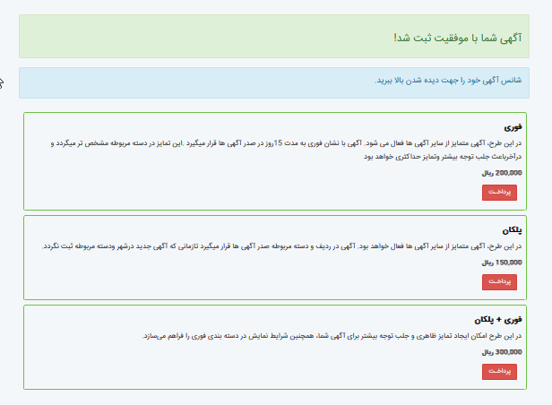 اگر آگهی رایگان شما به پرداخت نیاز دارد، مراحل پرداخت را طی کنید.