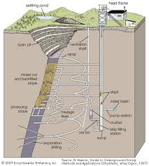 استخراج زیرزمینی شامل حفر تونل یا شافت به داخل زمین برای رسیدن به ذخایر معادن زیرزمینی است.