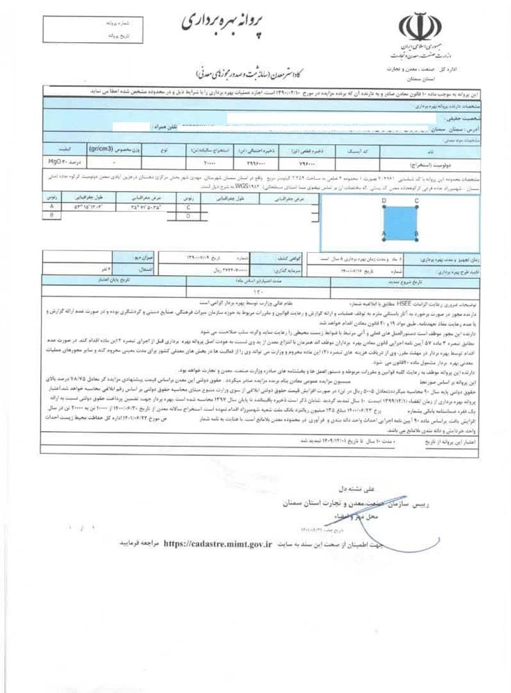 — 09197482030 گروه سرمایه گذاری سنگچین خریدار انواع معدن به صورت فعال و غیر فعال با پروانه بهره برداری از وزارت صنایع و معادن