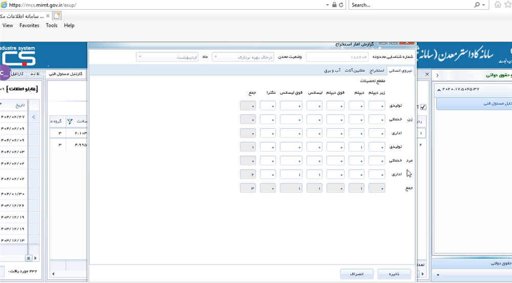 ورود اطلاعات مربوط به نفرات شاغل در معدن