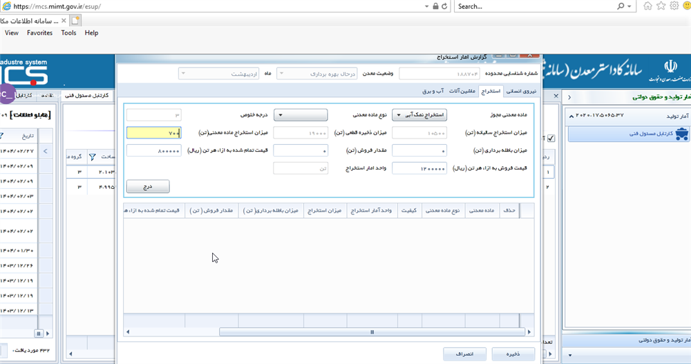 ورود اطلاعات دپو ماهیانه یا استخراج ماهیانه هر معدن