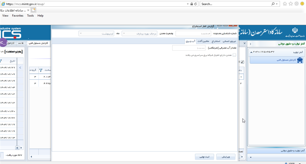 ورود اطلاعات مربوط به مصرف آب و برق در معدن