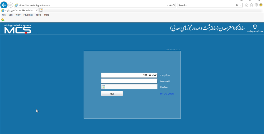ورود به سامانه کاداستر معادن با یوزر و پس ورد اختصاصی