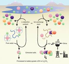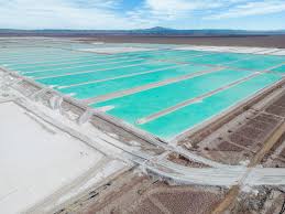 الف-تبخیر خورشیدی از آب نمک: آب نمک غنی از لیتیوم به حوضچههای تبخیر وسیع پمپ میشود، جایی که خورشید لیتیوم را طی ۱۲ تا ۳۶ ماه تغلیظ میکند.