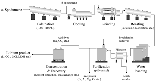 ب-استخراج سنگ سخت: مواد معدنی حاوی لیتیوم مانند اسپودومن استخراج، خرد و به صورت شیمیایی فرآوری میشوند.