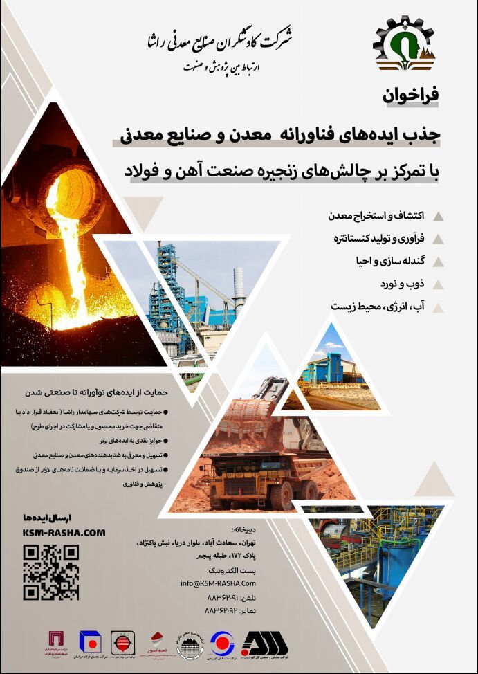 ثبت رایگان آگهی جشنواره جذب ایدههای فناورانه معدن و صنایع معدنی با موضوع ارتباط بین پژوهش و صنعت و با تمرکز بر چالشهای زنجیره صنعت آهن و فولاد برگزار میشود.