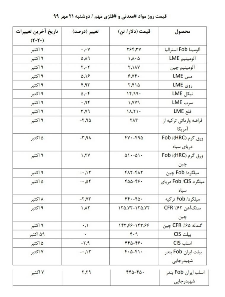 قیمت آلومینا ۲۶۴ دلار شد و شاهد رشد ۰.۰۷ درصدی بود و آلومینیوم در بورس فلزات لندن با رشد ۵.۸۹ درصدی ۱۸۰۵ دلار و در بورس شانگهای با رشد ۲.۰۲ درصدی به ۲.۱۸۷ دلار رسید.